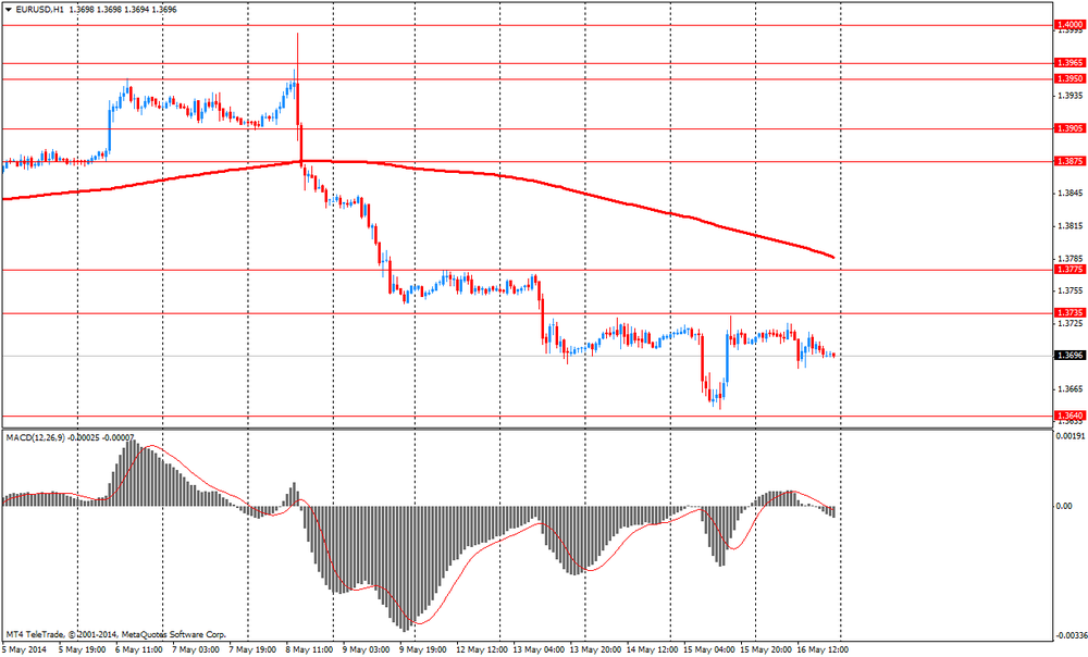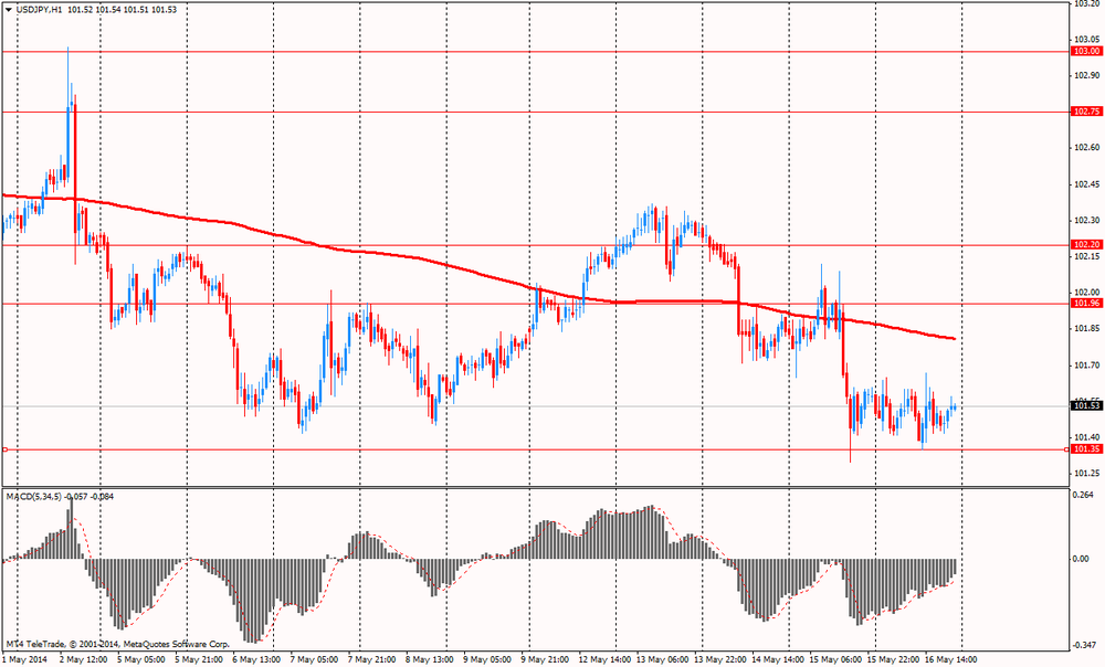 Некоторое давление на американскую валюту оказали данные, представленные Федеральной резервной системой, которые показали: по итогам прошлого месяца объем промышленного производства заметно снизился вопреки прогнозам экспертов на повышение, что, вероятнее всего, было связано с погодным эффектом. Согласно отчету, промышленное производство упало на 0,6% в апреле по сравнению с +0,9% в предыдущем месяце (пересмотрено с +0,8%). Экономисты ожидали рост на 0,4%. Между тем, показатель, оценивающий использование производственных мощностей, снизился до 78,6% с 79,3% в марте (пересмотрено с 79,2%). Ожидалось, что он составит 79,2%.