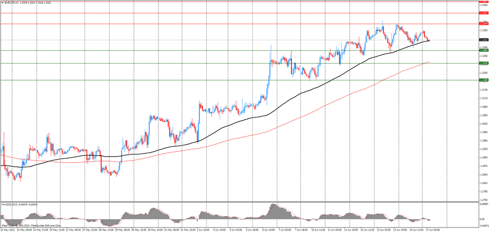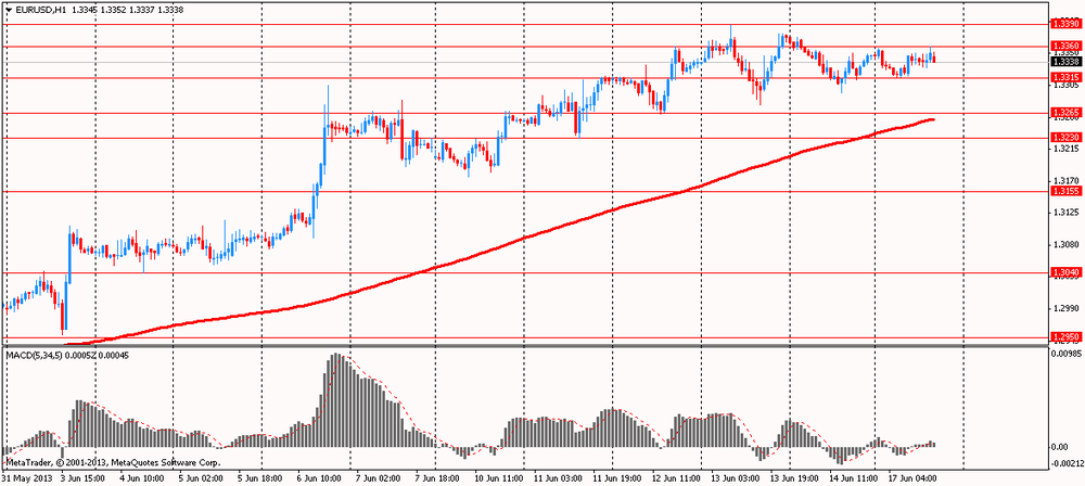 Евро торгуется сдержанно против иены и доллара в связи с отсутствием важным экономических данных, которые могут повлиять на ход торгов. Добавим, что небольшое влияние смог оказать отчет, который показал, что положительное сальдо торгового баланса 17 стран валютного блока в апреле было ниже рекордно высокой отметки. Данные по внешней торговле показали, что в апреле в еврозоне зафиксировано положительное сальдо внешней торговли товарами в размере 14,9 млрд евро (19,9 млрд долларов), так как экспорт из региона превысил импорт. Хотя это положительное сальдо выше уровня 3,3 млрд евро, зафиксированного в апреле 2012 года, оно значительно ниже рекордного максимума 22,5 млрд евро, достигнутого в марте. Общий объем экспорта в апреле составил 161,3 млрд евро против 165,6 млрд евро в марте. Импорт в апреле вырос до 146,4 млрд евро против 143,0 млрд евро в марте. Эти данные указывают на то, что внутренний спрос, вероятно, вырос в первом месяце 2-го квартала, тогда как зарубежный спрос снизился.