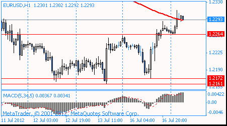 Кроме того, сегодня МВФ понизил прогнозы по мировому экономическому росту на 2013 г. в связи с европейским долговым кризисом, который замедляет экономику развивающихся стран. Согласно обновленным прогнозам, мировой ВВП в следующем году может увеличиться на 3,9%, тогда как в апреле МВФ называл цифру 4,1%.Инвесторы ожидают выступления председателя ФРС США Бен Бернанке, которое состоится в Конгрессе во вторник и среду. Вероятнее всего, в своем выступление Бернанке подтвердит готовность центробанка к принятию новых мер, но только в случае дальнейшего замедления экономического роста.