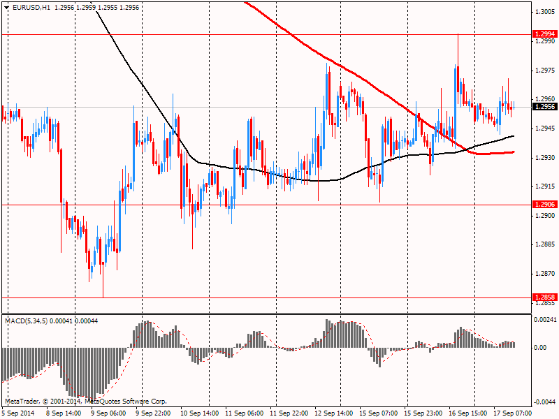 Курс евро торгуется почти без изменений против доллара, что связано с ожиданиями оглашения итогов встречи ФРС. Предполагается, что ФРС сократит объем программы покупки активов еще на $10 млрд. на пути к полному ее завершению уже в октябре и повышению процентных ставок в середине 2015 года.