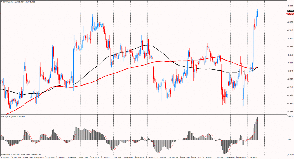 Евро подскочил на 0,9% против американской валюты до нового 8-месячного максимума 1,3680 доллара.