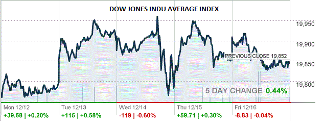 Основные фондовые индексы Уолл-стрит выросли в четверг, чему способствовал рост акций компаний финансового сектора на следующий день после того, как Федеральная резервная система повысила процентные ставки впервые в этом году и сигнализировала о более быстром темпе следующих повышений в 2017 году. Кроме того, потребительские цены выросли по итогам ноября, зафиксировав четвертое месячное повышение подряд, что предоставляет свежие доказательства того, что инфляционное давление усиливается. Согласно данным, с учетом сезонных колебаний индекс потребительских цен увеличился на 0,2% в ноябре по сравнению с повышением на 0,4% месяцем ранее. Последнее изменение совпало с прогнозами. Вместе с тем, данные, представленные Министерством торговли США, показали, что отрицательное сальдо платежного баланса уменьшилось по итогам третьего квартала, так как скачок в поставках сои увеличил объемы экспорта. Согласно отчету, дефицит платежного баланса, который измеряет поток товаров, услуг и инвестиций в страну и из страны, снизился до $113,0 млрд. в 3-м квартале по сравнению с $118,3 млрд. во 2-м квартале (показатель был пересмотрен с $119,9 млрд.). Экономисты прогнозировали, что платежного баланса сократится более существенно - до $111,6 млрд. Предварительные данные, опубликованные Markit Economics, показали, что индекс деловой активности в производственном секторе увеличилась в декабре до 54,2 пункта по сравнению с 54,1 пункта месяцем ранее. Последнее значение было самым высоким с марта 2015 года. Кроме того, показатель совпал с прогнозами экспертов. Стоит подчеркнуть, индекс остается выше отметки 50 пункта, что указывает на расширение активности, с октября 2009 года. Данные, представленные Национальной ассоциации строителей жилья (NAHB) и Wells Fargo, показали: уровень оптимизма среди американских строителей жилья значительно улучшился в декабре, достигнув самого высокого значения с июля 2005 года, причиной чему были надежды на меры стимулирования, обещанные новоизбранным президентом Дональдом Трампом. Согласно отчету, с учетом сезонных колебаний индекс состояния рынка жилья составил в декабре 70 пунктов, что оказалось на 7 пунктов выше, чем в ноябре. Аналитики ожидали, что показатель останется на уровне 63 пункта. Стоит также отметить, что индекс деловой активности в секторе производства заметно вырос в декабре, достигнув уровня 21,5 пункта по сравнению с 7,6 пункта в ноябре. Это показал отчет, представленный ФРБ Филадельфии. Экономисты ожидали роста данного показателя лишь до отметки 9,0 пунктов.