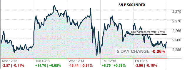 Основные фондовые индексы США закрылись ниже нуля в пятницу. ФРС видит три повышения ставки в следующем году вместо двух предусмотренных в сентябре, отчасти из-за пересмотра ожиданий по экономическим выгодам после избрания президентом США Дональда Трампа. Кроме того, как стало известно, объем закладок новых домов резко снизился по итогам ноября, но остался на уровне, который предполагает устойчивый спрос на односемейное жилье на фоне низких процентных ставок и стабильного создания новых рабочих мест. Об этом сообщило Министерство торговли США. Согласно данным, с учетом сезонных колебаний строительство нового жилья упало на 18,7%, до 1,09 млн. единиц (в перерасчете на годовые темпы). Показатель за октябрь был пересмотрен до 1,34 млн. с 1,323 млн. Между тем, количество разрешений на строительство - датчик будущей активности на рынке жилья - снизилось более умеренно - на 4,4%, до 1,201 млн. единиц. Экономисты ожидали, что в ноябре закладки новых домов уменьшатся до 1,225 млн. Цены на нефть выросли, приблизившись к пику 17 месяцев, благодаря готовности производителей снизить добычу в рамках глобального пакта ОПЕК и не входящих в картель государств.