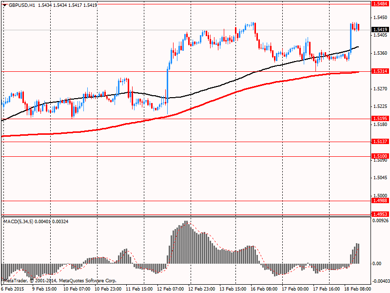 Фунт резко вырос против доллара, достигнув максимума со 2 января, чему помогла публикация протокола Банка Англии и данных по рынку труда Британии. В протоколе говорилось, что комитет проголосовал единогласно за то, чтобы оставить без изменений ставку и программу QE. Детали показали, что все представители комитета считают более вероятным повышение ставок в следующие 3 года. Двое представителей заявили о необходимости начать повышение уже в 2015, в то время как один считает вероятным смягчение политики перед ее дальнейшим ужесточением. Комитет полагает, что зарплаты будут расти быстрее ожиданий, но отмечает низкий уровень инфляции как угрозу для развития такой динамики. Прогнозируется, что в ближайшие 2 года рост заработной платы ускорится до 4%. Кроме того, Банк рассчитывает, что после того, как ситуация с ценами на нефть стабилизируется, ИПЦ резко поднимется вверх.