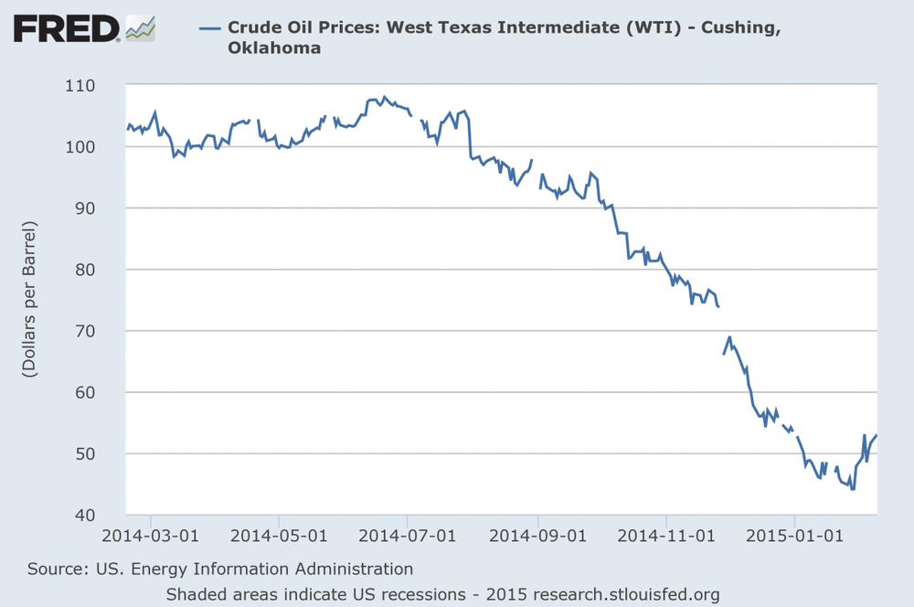 "Но падение цен на нефть на 50 проц на спекулянтов списать нельзя, - добавил он. - За этим стоят более фундаментальные показатели, когда больше производится, чем потребляется на ежедневной основе".