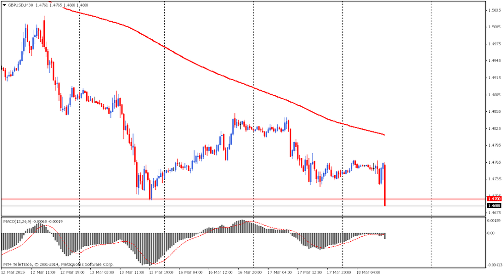 Курс фунта резко снизился против доллара США, достигнув самого низкого уровня с июня 2010 года, что было связано с публикацией смешанной статистики по рынку труда, а также протокола заседания Банка Англии. Данные, представленные Управлением национальной статистики, показали: уровень безработицы в Великобритании составил в феврале 5,7 процента, что является минимумом почти за семь лет. Тем не менее, показатель оказался выше прогнозов экспертов - ожидалось снижение до 5,6 процента. Также стало известно, что средний недельный заработок (с учетом бонусов) вырос на 1,1 процента в январе по сравнению с тем же месяцем 2014 года. Напомним, в декабре было зафиксировано повышение на 2,4 процента. В ONS сказали, что такое замедление было связано с уменьшением бонусных выплат со стороны компаний по сравнению с декабрем. Без учета бонусов заработок вырос на в январе на 1,6 процента, так как и в декабре. Напомним, инфляция, измеряемая индексом потребительских цен, составила 0,3 процента в январе.