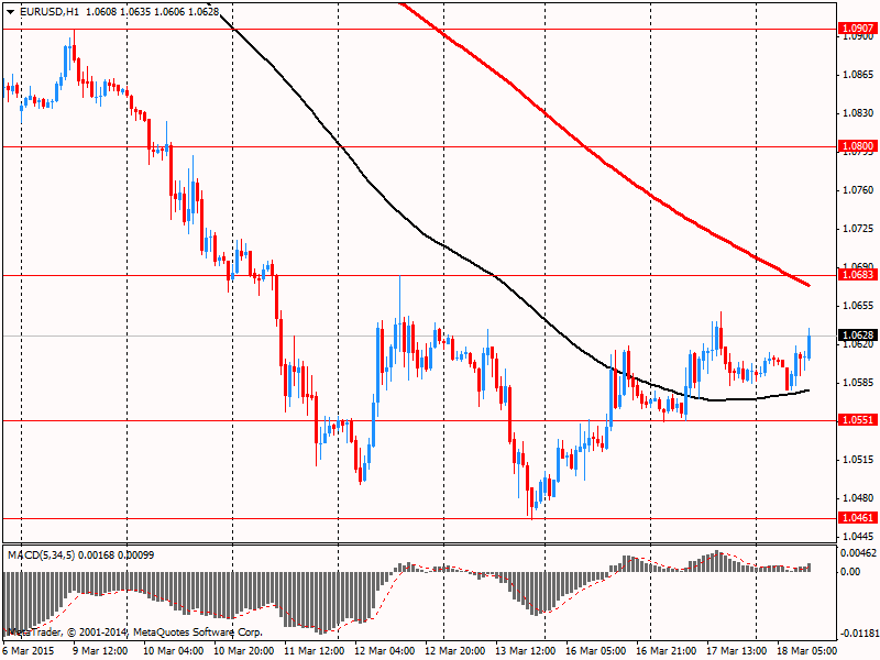 Евро торгуется немного отступив от 12-ти летнего минимума по отношению к доллару США, на фоне осторожности инвесторов в ожидании публикации заявления ФРС США. Инвесторы опасаются, что регулятор может повысить ставку на фоне улучшения макроэкономических показателей США, в частности, ситуации на рынке труда. Изначально вопрос о повышении ставки должен был рассматриваться в июне. Эти опасения укрепились после публикации министерством труда страны сильных статистических данных по уровню безработицы за февраль. Показатель снизился до 5,5% с 5,7% в январе. Число рабочих мест в несельскохозяйственных отраслях экономики выросло на 295 тысяч. При этом аналитики предсказывали снижение уровня безработицы до 5,6% и роста числа рабочих мест на 235 тысяч.