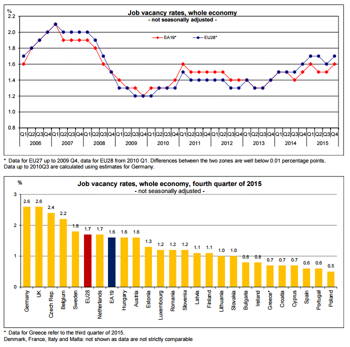 Незначительное влияние оказала статистика по еврозоне. В Евростат сообщили, что уровень вакантных рабочих мест в еврозоне составил 1,6% в четвертом квартале 2015 года, что оказалось немного выше, чем в предыдущем квартале (1,5%). Тем временем, уровень вакансий среди стран Европейского союза составил 1,7% в четвертом квартале 2015 года по сравнению с 1,6% в предыдущем квартале. Другой отчет показал, что в 4-м квартале почасовые затраты на рабочую силу выросли на 1,3% годовых в еврозоне и на 1,9% годовых среди 28 стран ЕС. Напомним, в 3-м квартале было зафиксировано повышение на 1,1% и 1,9% соответственно. В еврозоне, почасовая оплата труда и заработная плата выросли на 1,5% годовых, в то время как затраты, не связанные с заработной платой, повысились 0,7% годовых. В ЕС, почасовая оплата труда и заработная плата выросла на 2,0%, а затраты, не связанные с заработной платой, повысились на 1,4%.