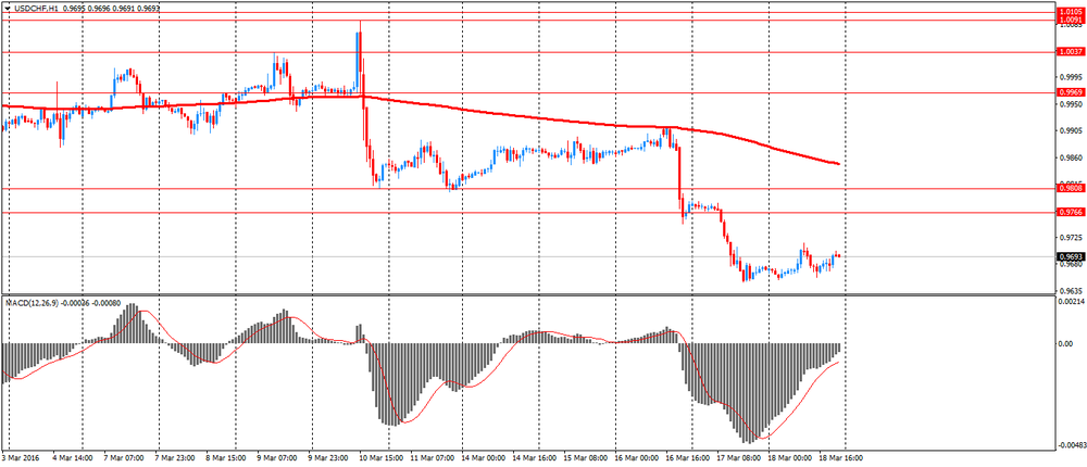 Швейцарский франк в четверг существенно вырос против доллара, достигнув максимума 11 февраля, что было связано с итогами заседания ФРС и ШНБ. ЦБ Швейцарии принял решение оставить ставку по депозитам без изменений на уровне -0,75%, как и предполагали прогнозы. В своем заявлении ЦБ вновь повторил, что курс франка остается завышенным, и он по-прежнему готов проводить интервенции на валютном рынке в случае необходимости. "В последние месяцы перспективы мировой экономики несколько ухудшились, а волатильность на финансовых рынках сохраняется. На этом фоне отрицательная ставка и намерение ЦБ проводить интервенции на валютном рынке нужны для ослабления повышательного давления на швейцарский франк", - сказано в заявлении ЦБ. По словам аналитиков, Швейцарский национальный банк не будет беспокоиться, пока пара EUR/CHF не опустилась от текущего уровня CHF1,10 до района CHF1,05-CHF1,07. Также ЦБ пересмотрел на понижение прогнозы по росту и инфляции, в качестве причины назвав снижение цен на энергию. ЦБ понизил прогноз роста экономики страны до 1%-1,5%, тогда как в декабре он прогнозировал рост на 1,5%. По прогнозу, потребительские цены в 2016 году упадут на 0,8%. Банк ожидает, что в 2017 году цены вырастут на 0,1%, в 2018 году - на 0,9%. Кроме того, Государственный секретариат по экономическим вопросам (SECO) понизил свои прогнозы по росту ВВП Швейцарии, сославшись на то, что в настоящий момент не существует явных признаком заметного ускорения роста мировой экономики. Ожидается, что экономика вырастет на 1,4 процента в этом году, а не 1,5 процента, как прогнозировалось в декабре. На 2017 года агентство ухудшило прогноз до 1,8 процента с 1,9 процента. Потребительские цены, согласно оценкам, будут снижаться более быстрыми темпами в 2016 году - на 0,6 процента по сравнению с предыдущим прогнозом -0,1 процента. В то же время, прогноз по темпах на инфляции на 2017 год был сохранен на уровне 0,2 процента.