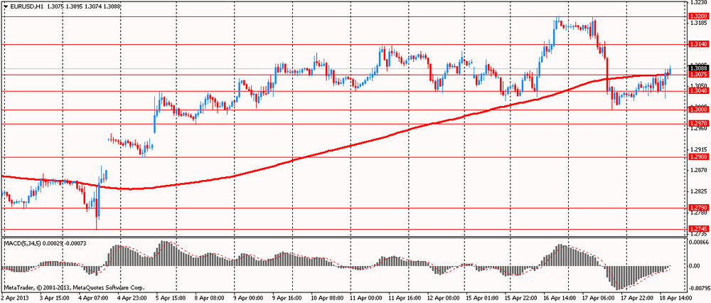 Также сегодня в Японии вышли данные по дефициту торгового баланса. В марте 2013г. показатель составил 3,7 млрд долл., что почти в два раза меньше показателей февраля этого года. Однако мартовский дефицит торгового баланса означает, что уровень импорта в Японию превышает объемы экспорта девятый месяц подряд, что является наиболее длительным периодом с 1980г. За год экспорт в США вырос на 7%, а в Китай, наоборот, снизился на 2,5%. Стоит отметить, что эксперты предполагают, что уровень японского экспорта в ближайшие месяцы возрастет из-за девальвации курса иены на фоне масштабных вливаний в экономику со стороны Банка Японии.