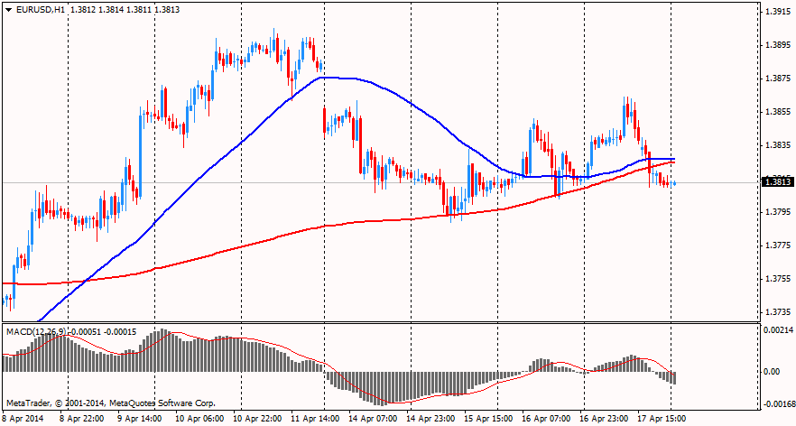 В связи со Страстной Пятницей рынки в США, Великобритании, Германии, Гонконге, Сингапуре, Австралии и Новой Зеландии закрыты: большинство валютных пар торговались в узком диапазоне без определённой динамики.