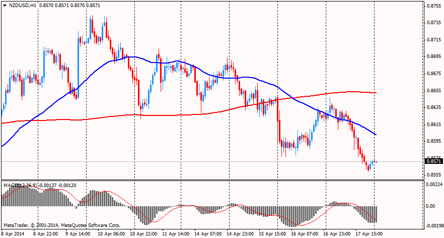 Банк Канады предоставил свой отчет по денежной политике, где предсказал подъем инфляции на ежеквартальной основе: в 1 квартале ожидается общая инфляция на уровне 1,3%, после чего ускорится до 1,6%, 1,8% и 1,9% в трех последующих кварталах. Базовая инфляция по прогнозам будет на уровне 1,2% в первом и втором квартале, после чего ускорится до 1,4% в 3 квартале и до 1,6% в 4 квартале.Новозеландский и австралийский доллар снизились на фоне негативных данных по Китаю. По итогам Национального бюро статистики КНР, число продаж жилой недвижимости в стране за период январь-март снизилось на 7,7% до 1,11 трлн. юаней ($178 млрд.). По мнению аналитиков MarketWatch, негативное влияние на объем реализации жилья в Китае оказали повышенные требования кредитных ипотечных организаций к заемщикам и сниженные цены на жилье в ряде городов КНР. Совокупный объем вложений инвесторов в рынок недвижимости Китая за отчетный период вырос на 16,8% - до 1,53 трлн. юаней, а в первые два месяца текущего года - на 19,3%. Строительная активность КНР значительно снизилась. Наблюдается сокращение застраиваемых площадей на 25,2% - до 290,9 млн. квадратных метров.