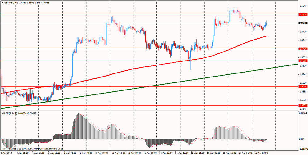 В пятницу в 04:30 GMT Япония выпустит индекс активности во всех отраслях экономики за февраль. В 08:00 GMT глава ШНБ Томас Йордан выступит с речью. В 08:30 GMT Британия опубликует изменение объёма розничной торговли с учетом затрат на топливо, изменение объёма розничной торговли без учета затрат на топливо, объем ипотечного кредитования от ВВА за март. В 10:00 GMT ЕЦБ объявляет данные по погашениям 3-летних LTRO. В 13:55 GMT в США выйдет индикатор уверенности потребителей от университета Мичигана за апрель.
