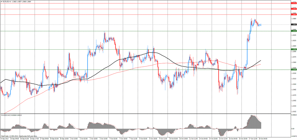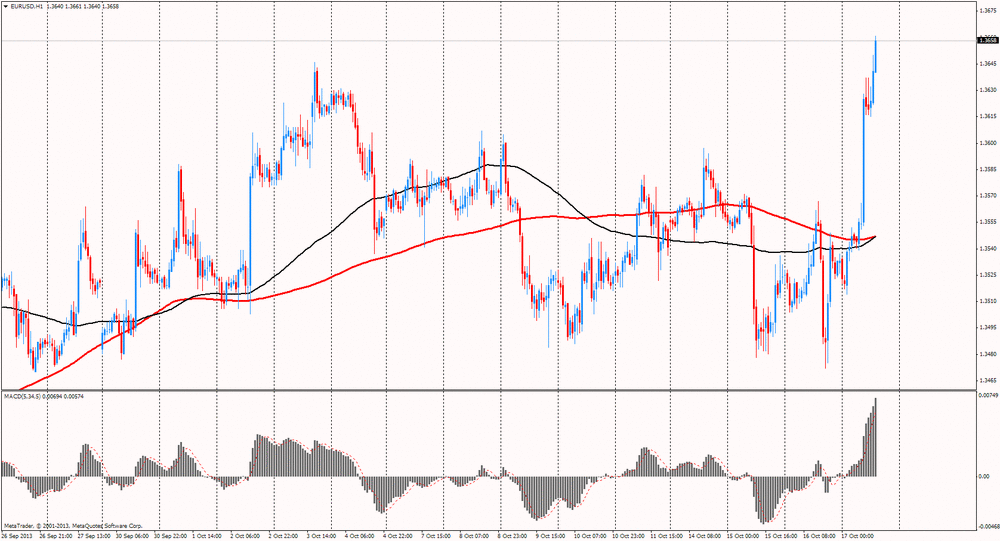 Евро подскочил на 0,9% против американской валюты до нового 8-месячного максимума 1,3680 доллара.