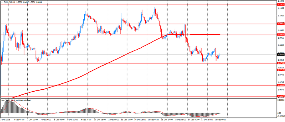 Доллар США вырос против иены, ненадолго достигнув Y123,57 после оглашения решения Банка Японии. Однако вскоре иена вернула утраченные позиции и сейчас торгуется около максимума 11 декабря. Как стало известно Банк Японии оставил ключевую процентную ставку на уровне 0-0.1%. Центробанк также сохранил без изменений ключевую политику увеличения денежной массы на Y80 трлн в год и начал новую программу по покупке ETF с апреля 2016 года.
