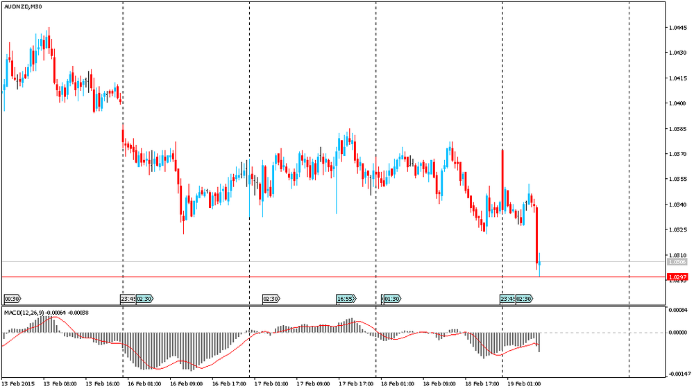 Пара AUD/NZD упала к уровню Nz$1.0297 на фоне заявления агентства S&P. Standard & Poor's поддержало предупреждение Резервного банка Австралии о том, что федеральный бюджет окажется уязвимым в случае потрясений в мировой экономике. Такое развитие событий может создать риск для рейтинга Австралии "ААА". По мнению экономистов агентства, в последние шесть месяцев перспективы бюджета Австралии резко ухудшились на фоне падения цен на сырьевые товары. По недавно опубликованным подсчетам Goldman Sachs, из-за падения цен на сырьевые товары в течение следующего десятилетия национальный доход Австралии может сократиться на 500 млрд австралийских долларов (390,6 млрд долларов США).