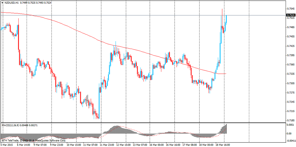 Новозеландский доллар консолидируется со склонностью к снижению, после роста в начале сегодняшней сессии сессии, на фоне позитивных данных по ВВП. Статистическая служба Новой Зеландии сообщила, что к декабрю 2014 года показатель ВВП составил 3,5% - это максимальный годовой рост с 2007 года, незадолго перед мировым финансовым кризисом. Рост ВВП за четвертый квартал составил 0,8%, рост возглавили розничная торговли и гостиничный бизнес, также выросли услуги в сфере недвижимости и промышленность.