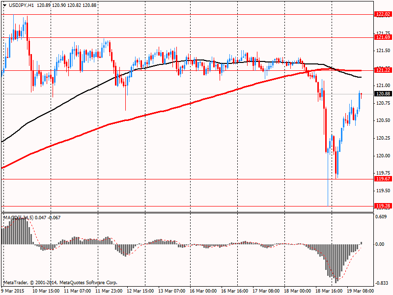 Иена укрепилась по отношению к доллару, однако негативное отношение к американской валюте оказывают давление на пару USD\JPY, после того, как ФРС исключила слово "терпение" из своего политического заявления, как и ожидалось, но понизила прогнозы по росту ВВП США, инфляции в долгосрочной перспективе и процентным ставкам. Председатель ФРС Джанет Йеллен сказала, что удаление слова "терпение" из заявления "еще не означает, что мы будем нетерпеливы" при принятии решения о начале повышения ставок. Она также отметила, что рост доллара привел к ослаблению экспорта США и столкнул вниз инфляцию.