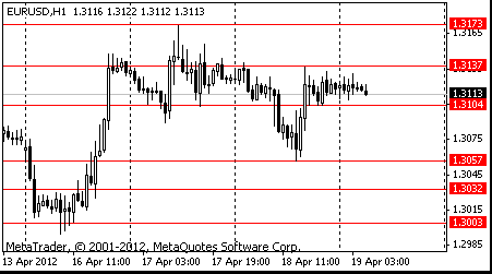 Банк Испании сообщил, что доля проблемных долгов в портфелях испанских банков в феврале выросла до 17-летнего максимума, составив 8,16%. Негатив также добавила информация о том, что Италия ухудшила прогноз бюджетного дефицита на текущий год с 1,6% до 1,7% ВВП. При этом целевой показатель дефицита на 2013 год был изменен с 0,1% до 0,5% ВВП.