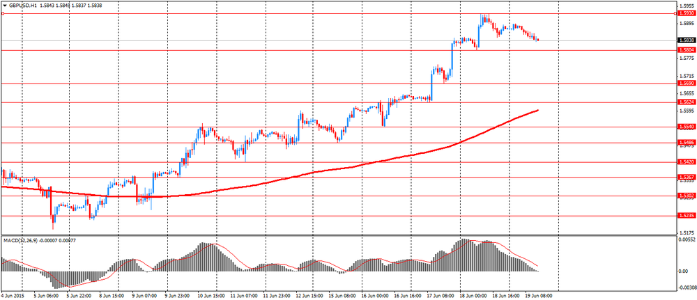 Фунт подешевел против доллара США, отступив от максимальных значений с ноября 2014 года. Трейдеры отмечают, что инвесторы начинают фиксировать прибыль после повышения курса фунта более чем на 2% с начала недели. Ранее давление на американскую валюту оказала статистика по инфляции. Министерство труда США заявило, индекс потребительских цен вырос с учетом сезонных колебаний на 0,4% в мае по сравнению с месяцем ранее. Это был самый большой прирост с февраля 2013 года, когда высокие цены на бензин подтолкнули вверх общий индекс. За исключением волатильных категорий продовольствия и энергоносителей, так называемые основные цены увеличились на 0,1%. Экономисты ожидали, что общие цены вырастут на 0,5%, а основные цены будут расти на 0,2%.