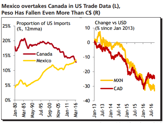 Ранее в этом году Канада была единственной экономикой из G7, чей показатель инфляции был выше 2,0 процента и в соответствии с целевым уровнем инфляции своего центрального банка. Несколько более высокие показатели канадской инфляции были частично функцией валютного сквозного эффекта и слабой (в то время) стоимости канадского доллара.
