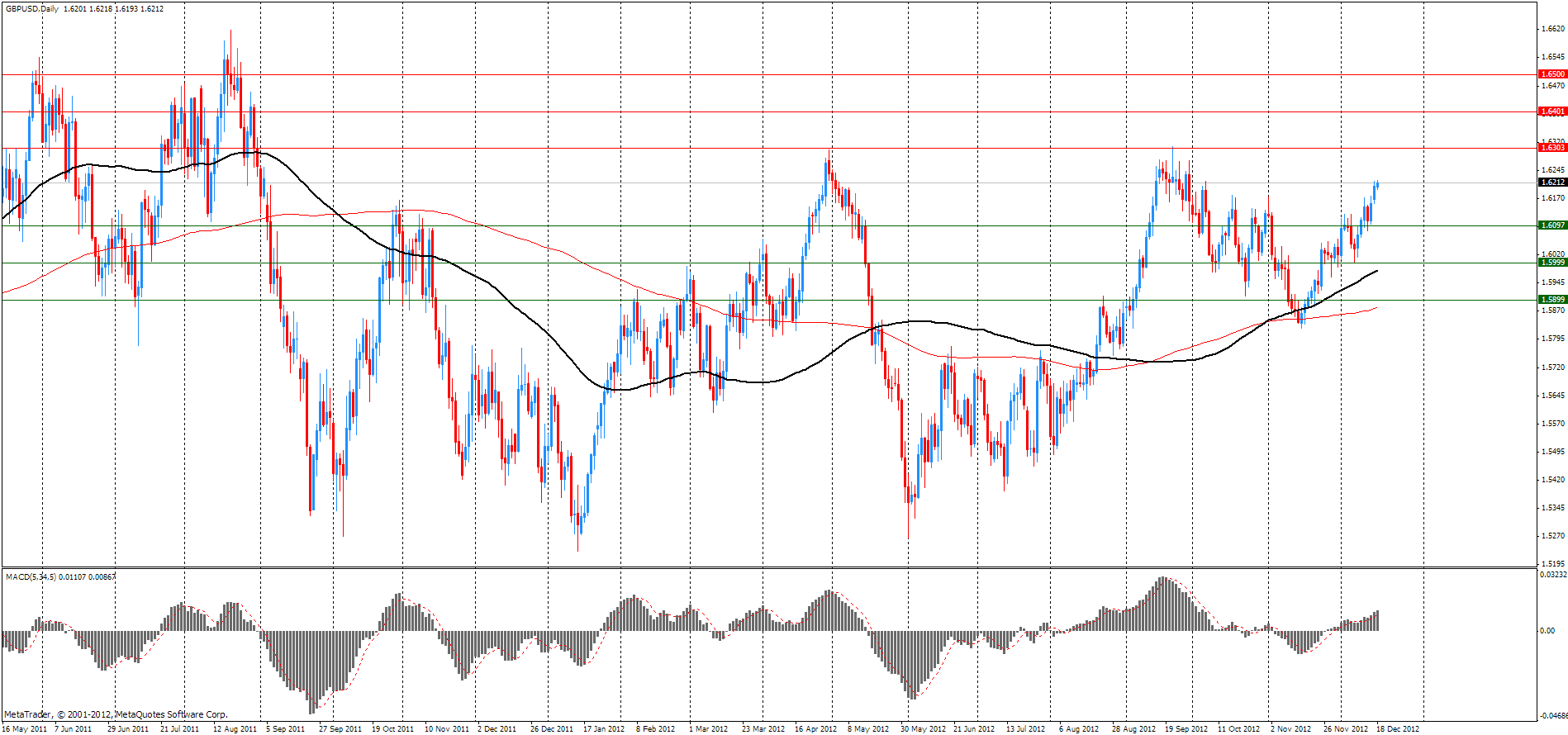 В ходе европейского ралли GBP/USD обновил максимум выше 1.6300, на отметке 1.6305. Вскоре началась фиксация прибыли, в связи с чем пара не сумела удержаться выше психологической отметки. На открытии в Нью-Йорке GBP/USD заметно ослаб, приблизившись к вчерашнему максимуму на 1.6270.