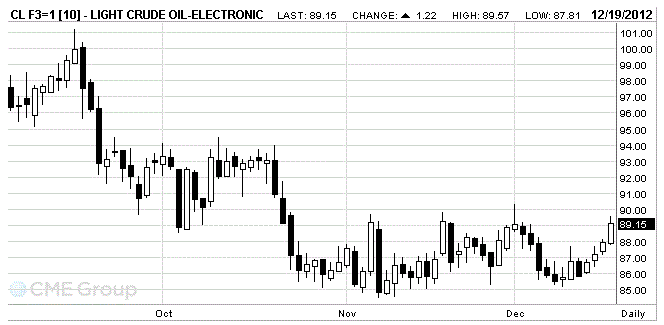Стоимость январских фьючерсов на американскую легкую нефть марки WTI (Light Sweet Crude Oil) выросла до 89,15 доллара за баррель на Нью-Йоркской товарной бирже.