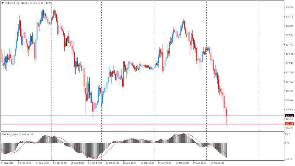 Иена получила поддержку в качестве безопасной гавани, поскольку нефть вновь упала ниже цены $28 за баррель до минимума с 2003 года после того, как Международное энергетическое агентство заявило, что несезонно теплая погода и рост предложения сохранят перенасыщенность на нефтяном рынке, по меньшей мере, до конца 2016 года. Значительное снижение на фондовых площадках Азии также повысило спрос на валюту-убежище. Между тем, главный секретарь Кабинета министров Японии Суга отметил, что падение цен на нефть благоприятно отражается на японской экономике. Ранее глава Банка Японии Курода заверил рынки в том, что Банк незамедлительно примет меры, включая смягчение монетарной политики, если ситуация с инфляцией ухудшится.
