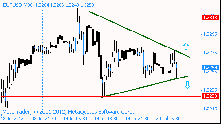 Поддержку единой валюте оказала новость о том, что агентство Fitch подтвердило рейтинг Италии “A-”, прогноз негативный. Также стало известно о том, что Парламент Германии одобрил помощь Испании большинством голосов (473 голосами против 97).