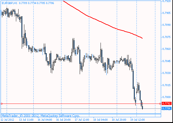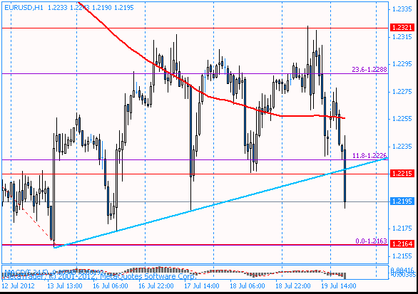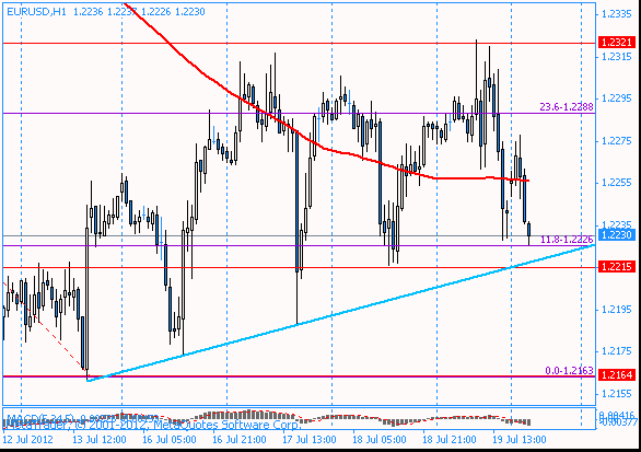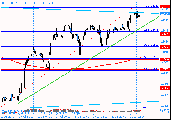 Nikkei 8,669.87 -125.68 -1.43%Пара GBP/USD находится сейчас на границе линии поддержки, которая построена по минимальным значениям 13 и 18 июля. Как видно из графика, цена уже тестирует данную линию в четвертый раз, что может указывать на вероятное пробитие. Если это произойдет цена может упасть до уровня $1,5595 или даже вплоть к $1,5555/60, где сейчас находится уровень 50% по Фибо ($1.5395-$1.5722) и проходит линия MA(200) для Н1.