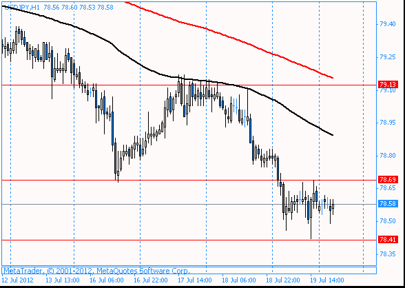 Сопротивление 3: Y79.40 (максимум 13 июля, МА (50) D1)