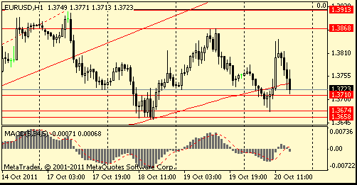 Вчера в первой половине дня евро вырос на слухах о достижении согласия между Францией и Германией по поводу расширения фонда ESFS до 2 трлн евро. Затем Financial Times Deutschland опубликовало заявление министра финансов Германии Шойбле о том, что размер ESFS может быть увеличен максимум до 1 трлн евро, а канцлер Меркель заявила, что не существует «волшебной палочкой» для решения финансового кризиса в регионе. Во второй половине дня единая валюта начала падать, когда законодатели отвергли прямые гарантии для фонда EFSF.