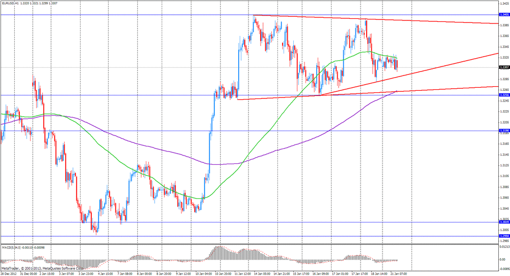EUR/USD провел значительную часть дня в боковом диапазоне $1.3300/1.3330, не сумев определиться с направлением движения. Сейчас пара торгуется в середине диапазона, в районе $1.3312/15, практически во флэте против цены открытия.