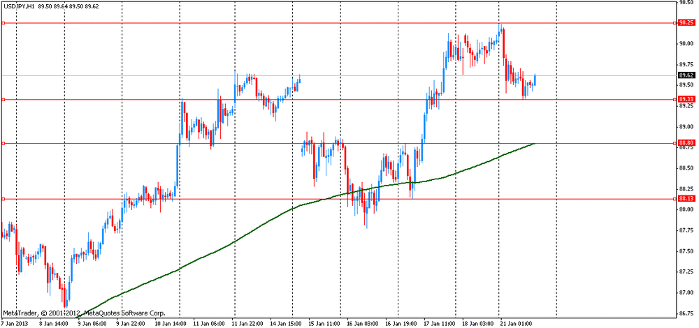 Иена выросла, отступив от минимального уровня за последние 2,5 года в ожидании принятия Банком Японии новых мер стимулирования экономики по итогам начавшегося в понедельник двухдневного заседания. Большинство экономистов ожидают, что Банк Японии расширит программу покупок активов, на 10 трлн иен ($ 112 млрд). Тем не менее, некоторые аналитики отметили, что рынок уже значительно учел в цене агрессивное смягчение денежно-кредитной политики Японии, поэтому реакция, возможно, будет сдержанной. Напомним, что за прошедший месяц иена потеряла 6% по отношению к доллару на ожиданиях, что Банк Японии, находящийся под давлением нового правительства страны, требующего от него увеличения стимулирования, примет дополнительные меры для поддержки японской экономики. Также дополнительную информацию о дальнейшем снижение пары USD/JPY сигнализируют технические индикаторы. Так 14-дневный индекс относительной силы RSI (14) уже давно находится выше уровня 70. Многие трейдеры рассматривают этот сигнал как возможный разворот направления движения цены.