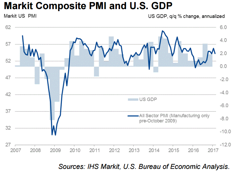 "Поставщики услуг остаются драйвером общего роста, о чем свидетельствует дальнейший резкий рост новых заказов и занятости, самый сильный за пять с половиной лет в каждом конкретном случае," сказал Алекс Гилл, экономист IHS Markit.