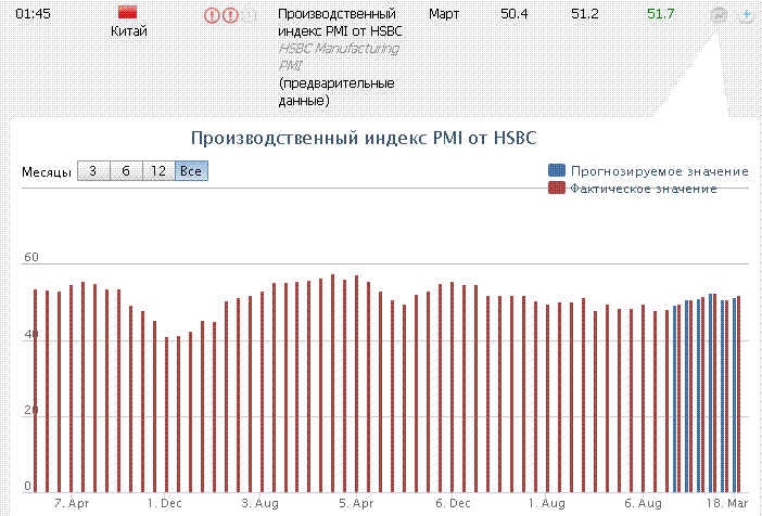 01:45 Китай Производственный индекс PMI от HSBC (предварительные данные) Март 50.4 51.2