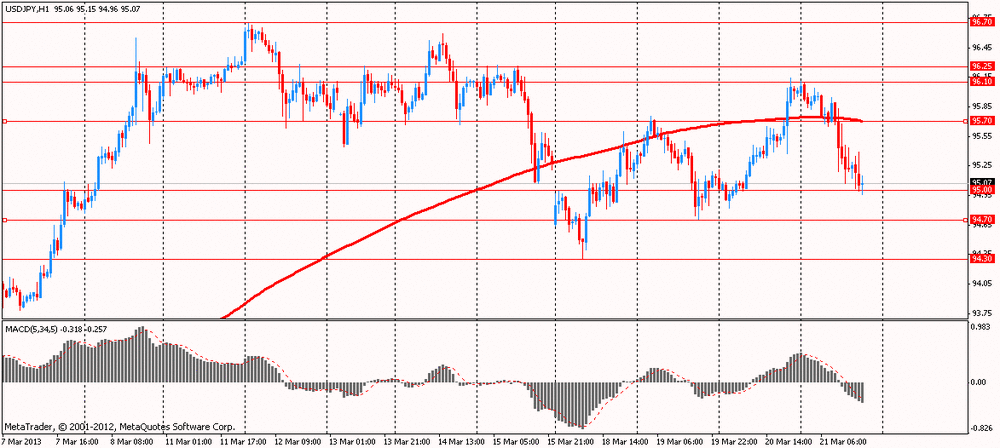 USD/JPY: в ходе азиатской сессии пара снизилась в область отметки Y95.70.