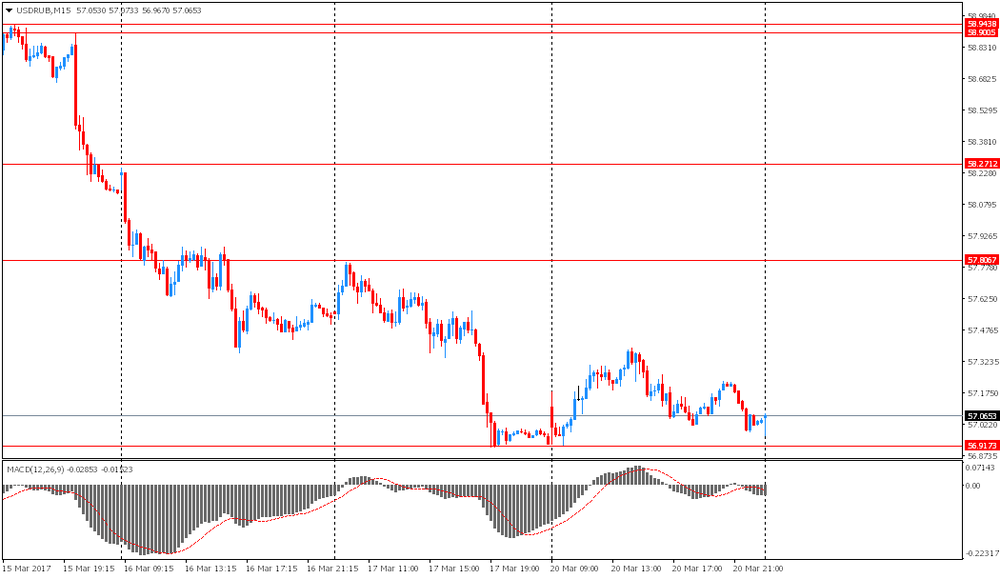 Инвесторы анализируют данные Министерства торговли, которые показали, что отрицательное сальдо платежного баланса США сократилось до $112,4 млрд в четвертом квартале 2016 года с $116 млрд в третьем квартале. Экономисты прогнозировали дефицит на уровне $128,3 млрд.