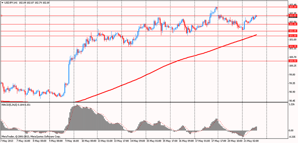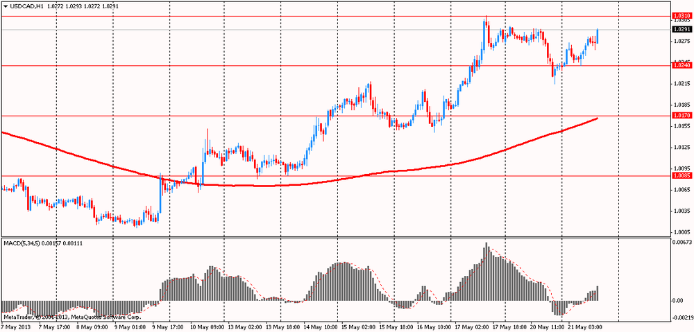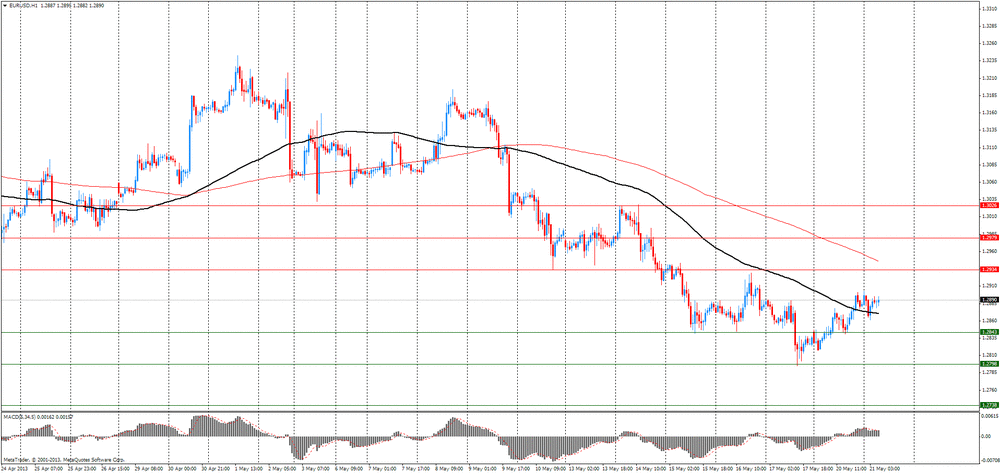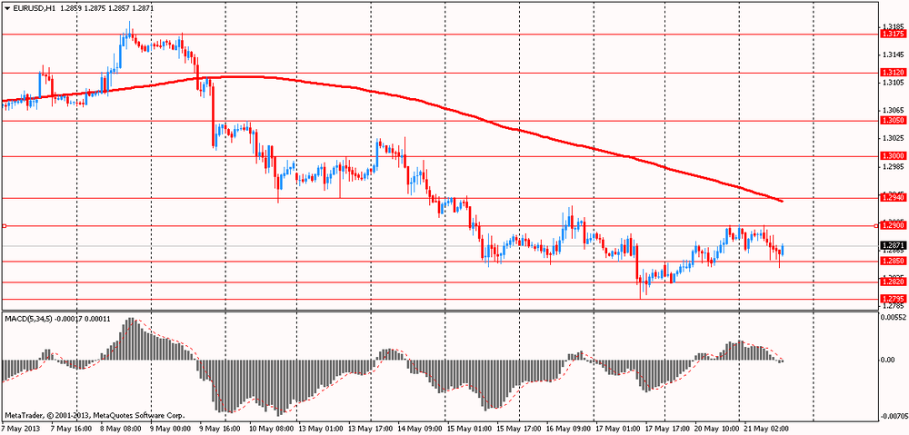 Доллар продолжает нести потери против евро в ожидании завтрашнего выступления председателя Федеральной резервной системы Бена Бернанке в Конгрессе и других официальных должностных лиц центрального банка США. Например, сегодня выступят с речью глава ФРБ Сент-Луиса Джеймс Буллард и Нью-Йорке представитель ФРС Уильям Дадли. Напомним, что 17 апреля Буллард отметил, что инфляция в стране упала намного ниже 2% целевого уровня инфляции, что может заставить ФедРезерв в дальнейшем увеличивать объем покупки активов.