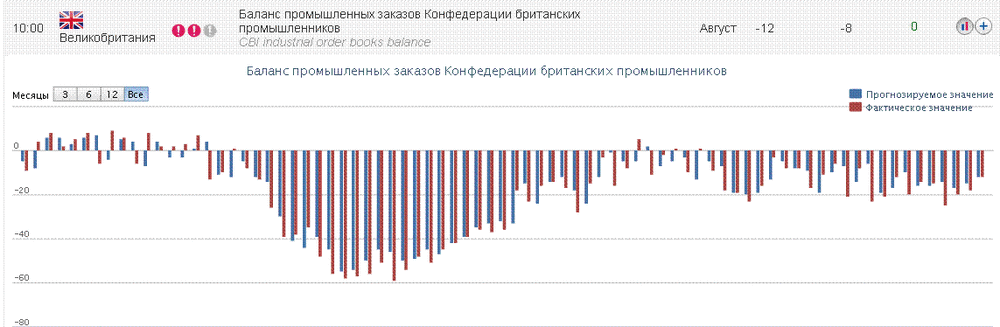 10:00 Великобритания Баланс промышленных заказов Конфедерации британских промышленников Август -12 -8