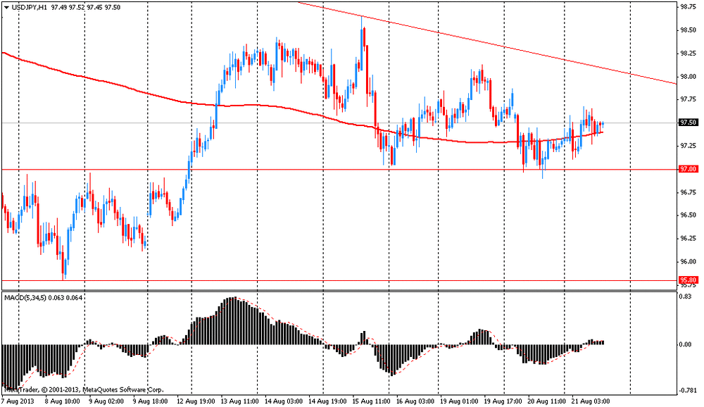 Пара USD/JPY растет вместе с индексом Nikkei, который повысился на фоне улучшения отношения инвесторов к риску после роста индийских и индонезийских акций. "Инвесторы покупают доллар и продают иену, в то время как индекс Nikkei растет на фоне некоторой стабильности индонезийских и индийских акций", - говорят аналитики IG Securities, прогнозируя сопротивление для пары в районе Y97,80, где наблюдаются приказы на продажу. По мнению IG Securities пара EUR/USD также снижается по мере того, как инвесторы закрывают некоторые длинные позиции в евро после роста единой европейской валюты до полугодового максимума. Это произошло вчера, когда инвесторы продавали валюты развивающихся рынков и вкладывались в менее рисковые активы в ожидании сворачивания программы покупки облигаций ФРС.