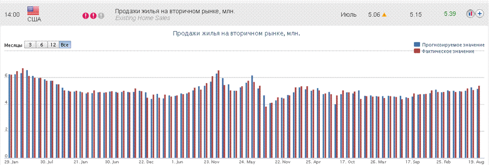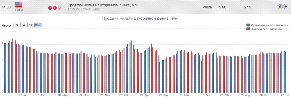 14:00 США Продажи жилья на вторичном рынке, млн. Июль 5.08 5.15