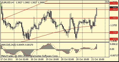 Вчера в первой половине дня евро вырос. Поддержку единой валюте оказали сообщения о проекте изменений Европейского фонда финансовой стабильности (EFSF). Источники сообщают, что согласно данному плану фонд сможет покупать облигации на вторичном рынке, а также сможет предоставлять кредиты станам ЕС до 10% от их ВВП. Но позже евро упал против доллара на опасениях, что заседание 23 октября может быть отложено. Падение усилилось после того, как стало известно, что канцлер Германии Меркель отменила выступление в парламенте страны в пятницу по вопросу еврозоны. Однако, к окончанию торгового дня евро восстановил утраченные позиции после совместного заявления лидеров Франции и Германии о том, что на саммите в воскресенье будет предложен совместный план, который будет окончательно утвержден на повторной встрече европейских лидеров в среду на следующей неделе.