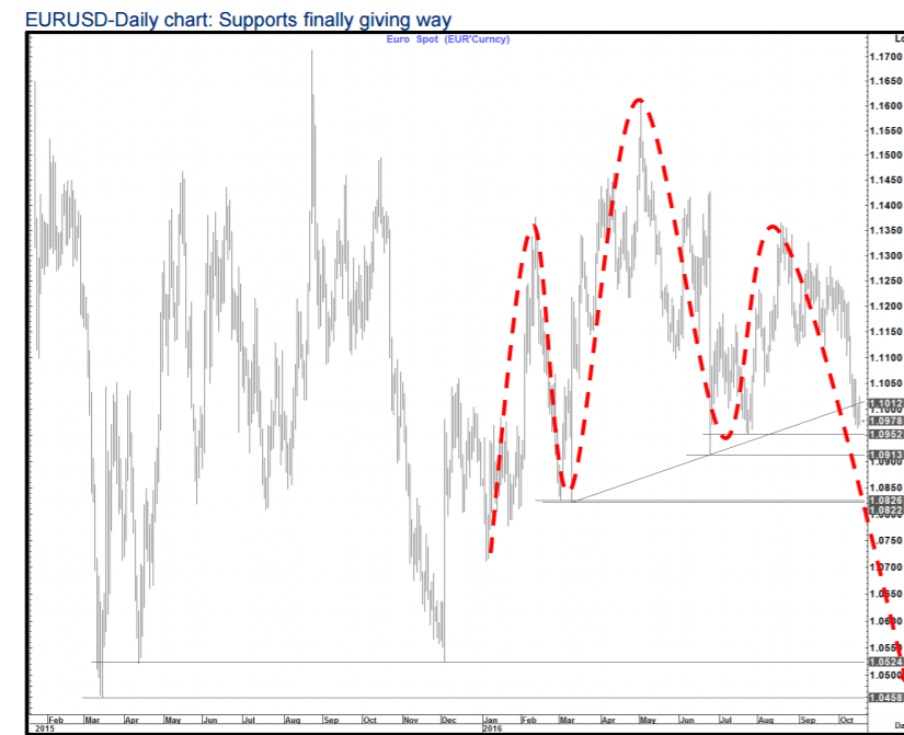 В Danske Bank полагают, что прорыв поддержки в районе $1,0950 технически теперь нацелит пару на уровни в диапазоне $1,0850 - 1,0700.