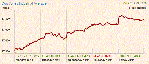 По итогам торговой недели: DOW +3.32%, S&P +3.24%, Nasdaq +3.57%