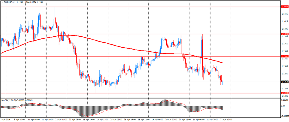 В четверг евро резко укрепился против доллара США, обновив максимум среды, но почти сразу же утратил все позиции. Причиной такой динамики были заявления главы ЕЦБ Драги и фиксация прибыли по евро. Глава ЕЦБ сообщил, что процентные ставки будут оставаться без изменений или будут понижены в течение более длительного времени. Также он отметил, что ЦБ продолжит пристально отслеживать ситуацию с инфляцией и в случае необходимости будет использовать все доступные в рамках мандата инструменты для достижения целевого уровня. Драги даже призвал рынки к терпению, отметив, что принятых мер вполне достаточно, надо лишь подождать. Поддержку доллару также оказала статистика по рынку США. Министерства труда США сообщило, что число первичных обращений за пособием по безработице снизилось на 6 000, до 247 000 за неделю, завершившуюся 16 апреля. Это был самый низкий уровень, начиная с недели, закончившейся 24 ноября 1973 года.