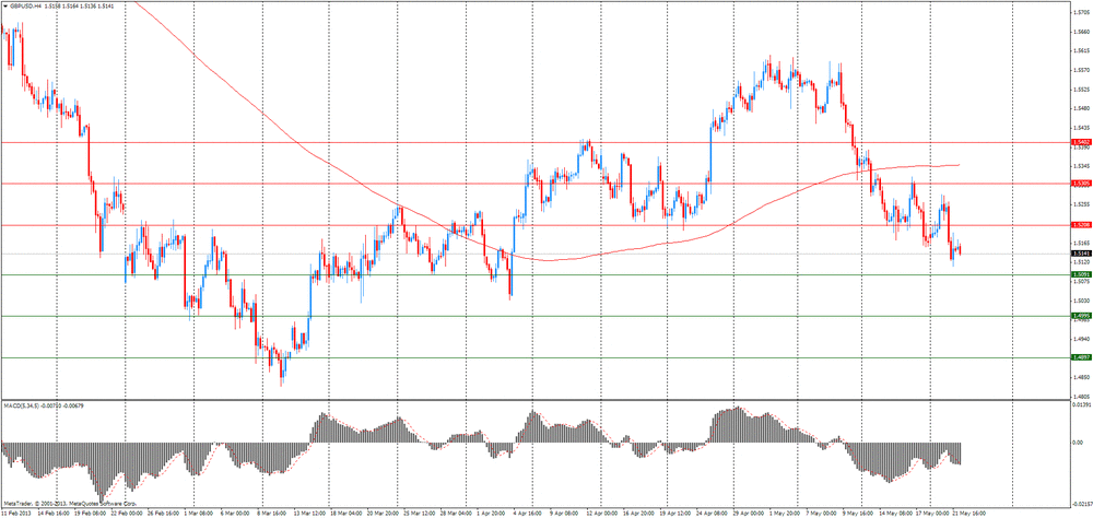 Курс фунта снизился против доллара после того, как Банк Англии опубликовал протокол своего заседания от 8-9 мая, в котором все члены MPC единогласно проголосовали за сохранение учетной ставки на уровне 0,5%. Что касается вопроса продолжения программы покупок активов в размере £375 млрд., второй месяц подряд 6 членов MPC проголосовали «за», тогда как три политика высказались против. Глава ЦБ Мервин Кинг, Пол Фишер и Дэвид Майлз, проголосовавшие «против», предпочли расширение программы на 25 млрд. ф.ст. до £400 млрд. Как говорится в протоколе, «в целом экономические новости в этом месяце можно расценить как благоприятные, и ожидается, что по итогам 2-го квартала экономика на 0,7% превысит ожидания Комитета, опубликованные 3 месяца назад». Однако монетарные власти подчеркнули, что по историческим меркам перспективы роста остаются неблагоприятными, а также допустили возможность ускорения инфляции и сохранения CPI выше 2%-ного целевого уровня в течение следующих 2 лет. Большинство членов MPC не считают увеличение программы стимулирования необходимым после расширения QE в феврале. Впрочем, Мервин Кинг, Пол Фишер и Дэвид Майлз заявили, что новый раунд расширения программы «приведет к более ранней нормализации политики, когда того потребует ситуация».