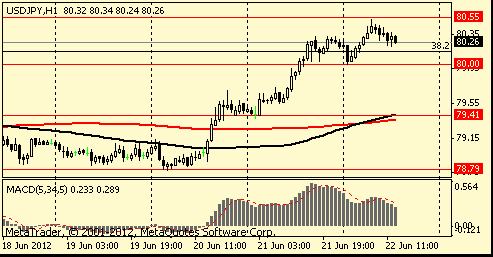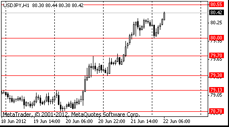 USD/JPY: пара показала максимум в области Y80.55, после чего отступила.