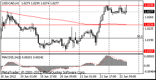 USD/CAD временно вырос на на 20 пунктов, однако преодолеть сопротивление в области C$1,0300 не сумел и вернулся обратно в район C$1,0280.