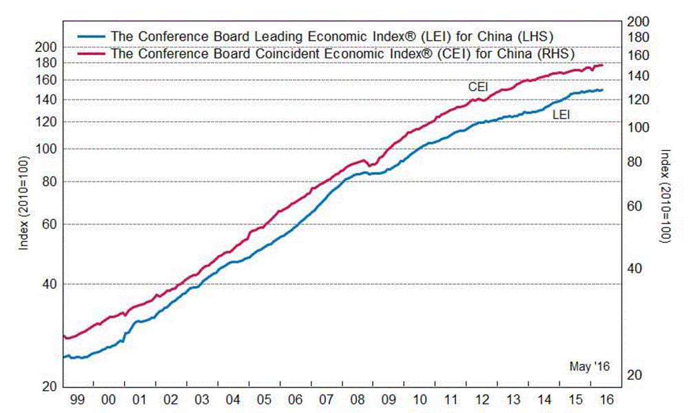 Результаты исследований, опубликованные Conference Board, показали: в мае ведущий экономический индекс (LEI) для Китая вырос на 0,2 процента, до уровня 149,3 пункта (2010=100), вслед за снижением на 0,1 процента в апреле и повышением на 0,3 процента в марте. В течение шести месяцев (с ноября 2015 года по май 2016 года) показатель увеличился на 1,0 процента по сравнению с ростом на 1,2 процента за предыдущий шестимесячный период (с октября 2015 года по апрель 2016 года).